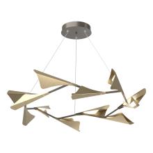 Inspired by the top-selling Quill Collection, the new 2020 Plume Collection features more substantially sized "plumes" that shield individual LED lighting elements. The 12-Light Plume is over 4 ft. in diameter, forming a stunning circular hanging pendant. Available as a two-toned option, one finish is selected for the core, and the same or another finish may be selected for the metal "plumes" to create a piece that perfectly suits its environment. Also available as a 5-Light (vertical) and an 8-Light (circular) pendant.