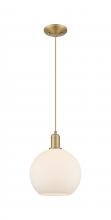 Athens - 1 Light - 10 inch - Antique Brass - Matte White shade - Cord hung - Mini Pendant