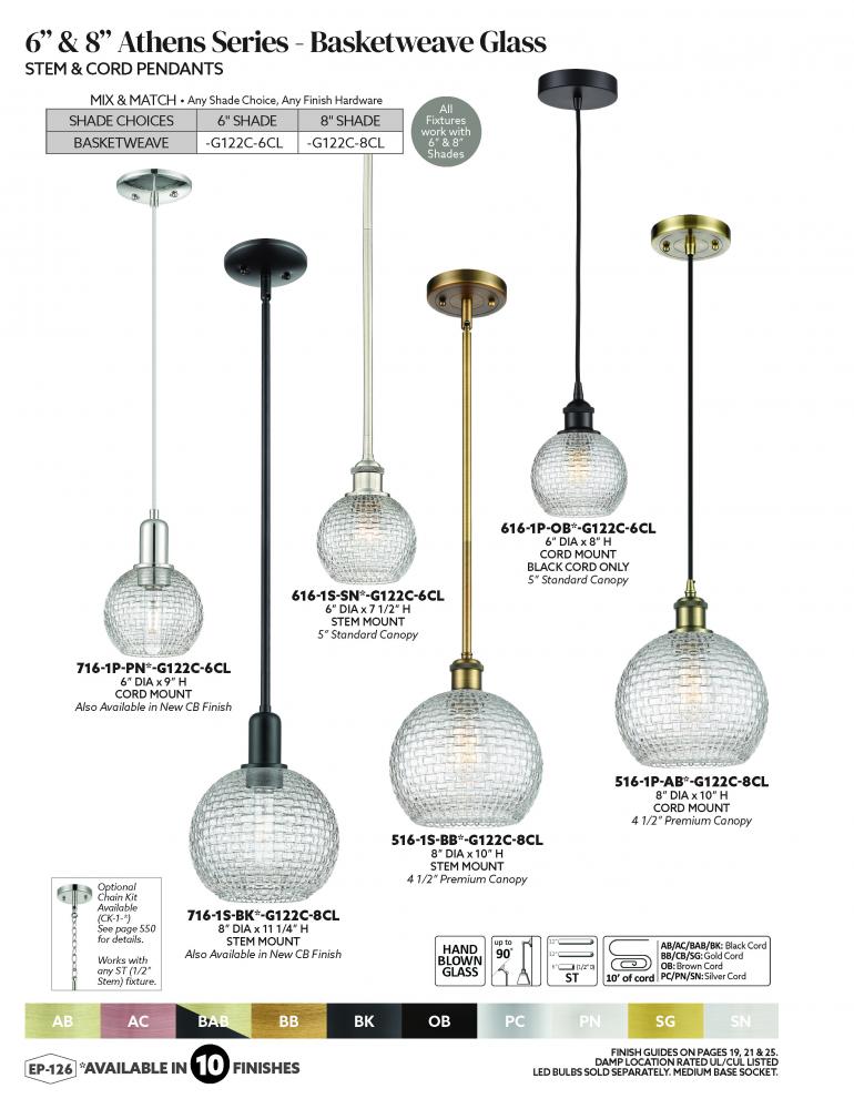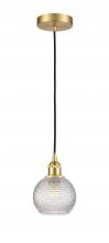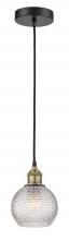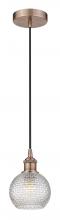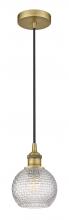 Athens - 1 Light - 6 inch - Antique Brass - Clear Basket Weave Shade - Cord hung - Mini Pendant