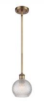 Athens - 1 Light - 6 inch - Antique Brass - Clear Basket Weave Shade - Mini Pendant