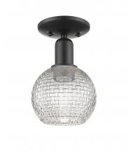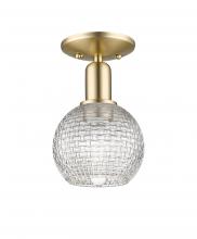 Athens - 1 Light - 6 inch - Antique Brass - Clear Basket Weave shade - Semi-Flush Mount