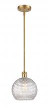 Athens - 1 Light - 8 inch - Antique Brass - Clear Basket Weave Shade - Mini Pendant