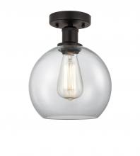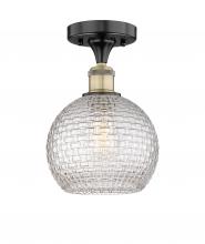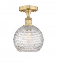 Athens - 1 Light - 8 inch - Antique Brass - Clear Basket Weave Shade - Semi-Flush Mount