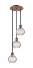 Athens - 3 Light - 12 inch - Antique Brass - Clear Shade - Cord Hung - Multi Pendant