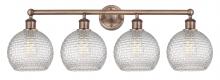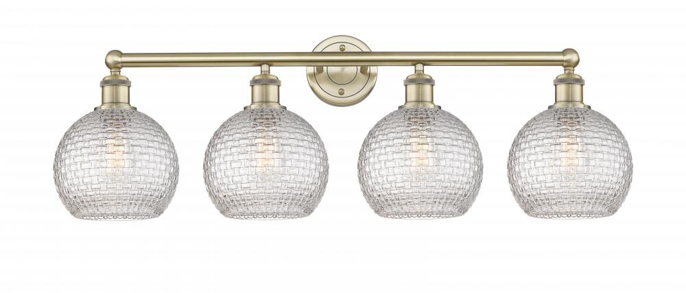 Athens - 4 Light - 35 inch - Antique Brass - Clear Basket Weave Shade - Bath Vanity Light
