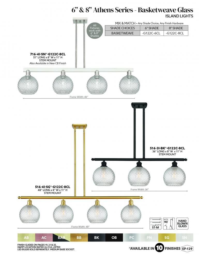 Athens - 4 Light - 51 inch - Antique Brass - Clear Basket Weave shade - Stem hung - Island Light