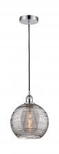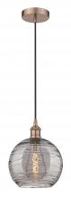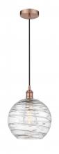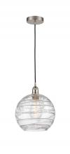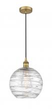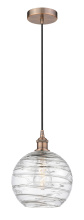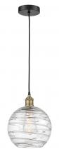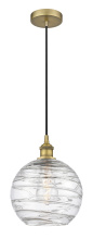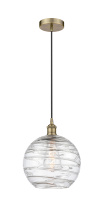 Athens Deco Swirl - 1 Light - 10 inch - Antique Brass - Clear Deco Swirl Shade - Cord hung - Mini Pendant