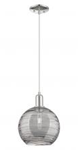 Athens Deco Swirl - 1 Light - 10 inch - Antique Brass - Clear Deco Swirl shade - Cord hung - Mini Pendant