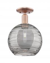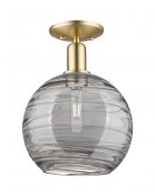 Athens Deco Swirl - 1 Light - 10 inch - Antique Brass - Clear Deco Swirl shade - Semi-Flush Mount