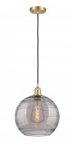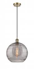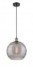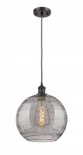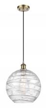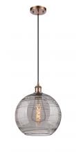 Athens Deco Swirl - 1 Light - 12 inch - Antique Copper - Clear Deco Swirl Shade - Cord hung - Mini Pendant