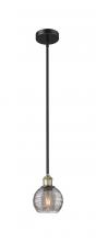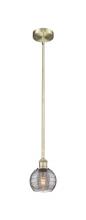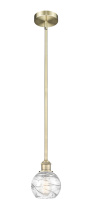 Athens Deco Swirl - 1 Light - 6 inch - Antique Brass - Clear Deco Swirl Shade - Stem hung - Mini Pendant