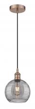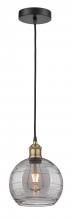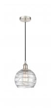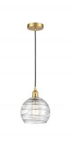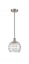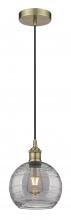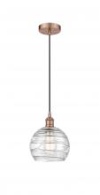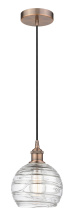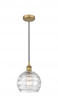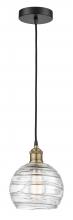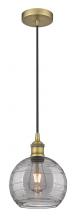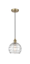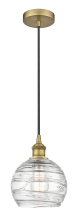 Athens Deco Swirl - 1 Light - 8 inch - Antique Brass - Clear Deco Swirl Shade - Cord hung - Mini Pendant