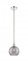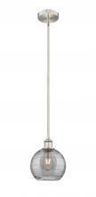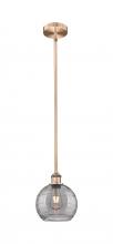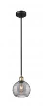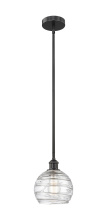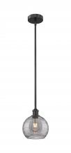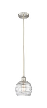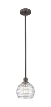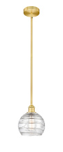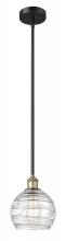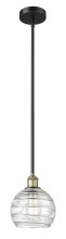 Athens Deco Swirl - 1 Light - 8 inch - Antique Brass - Clear Deco Swirl Shade - Stem hung - Mini Pendant