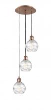 Athens Deco Swirl - 3 Light - 12 inch - Antique Brass - Clear Deco Swirl Shade - Cord hung - Multi Pendant