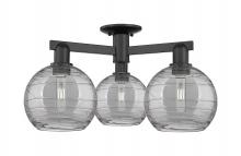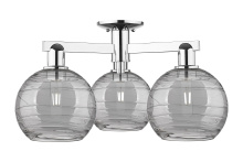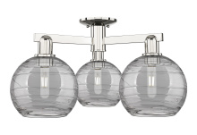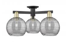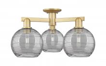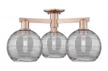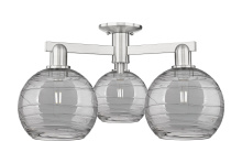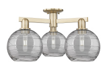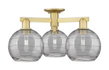 Athens Deco Swirl - 3 Light - 26 inch - Antique Brass - Clear Deco Swirl shade - Semi-Flush Mount