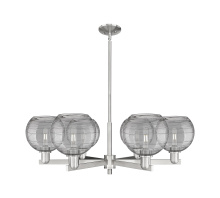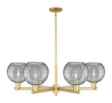 Athens Deco Swirl - 6 Light - 38 inch - Antique Brass - Clear Deco Swirl shade - Stem hung - Chandelier