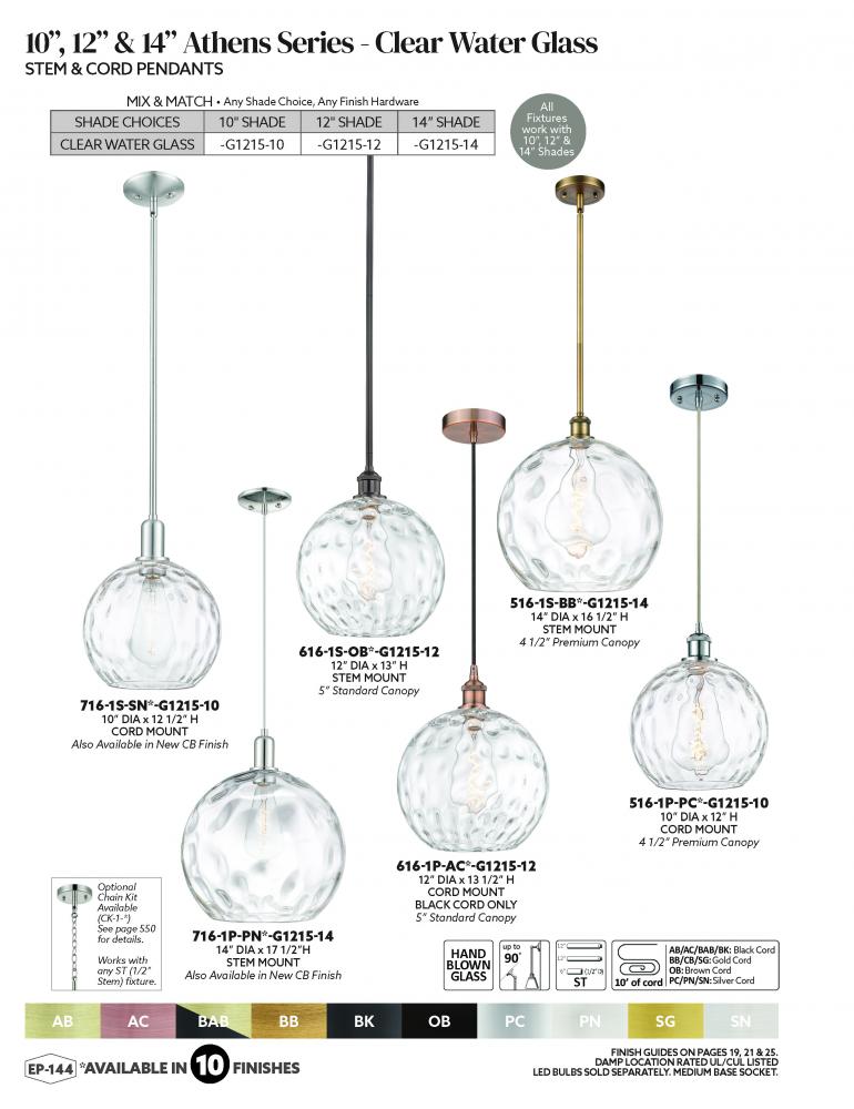 Athens Water Glass - 1 Light - 13 inch - Antique Brass - Clear Water Glass shade - Cord hung - Mini Pendant