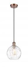 Athens Water Glass - 1 Light - 8 inch - Antique Brass - Clear Water Glass Shade - Cord hung - Mini Pendant