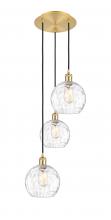 Athens Water Glass - 3 Light - 15 inch - Antique Brass - Clear Water Glass Shade - Cord hung - Multi Pendant