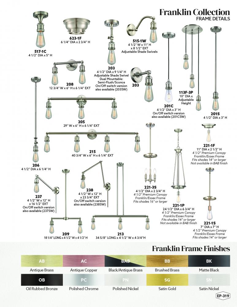 The Franklin Restoration collection is comprised of heavy cast components that give the fixture a heavy Industrial look and feel. We offer the fixture in 10 finishes with a Bare Bulb look or with over 100 possible metal and glass shade options that can cha