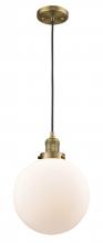 Beacon - 1 Light - 10 inch - Antique Brass - Matte White Shade - Cord hung - Mini Pendant