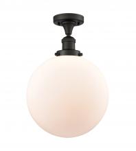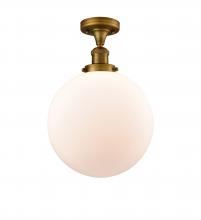Beacon - 1 Light - 12 inch - Antique Brass - Matte White Shade - Semi-Flush Mount