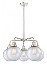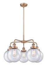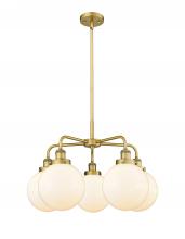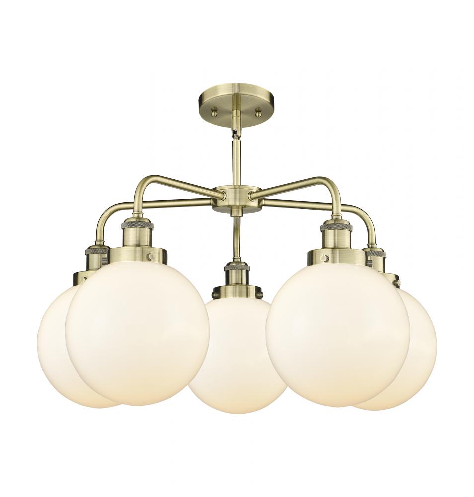 Beacon - 5 Light - 27 inch - Antique Brass - Matte White Shade - Chandelier