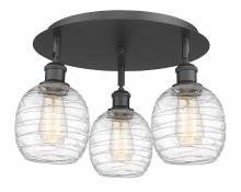 Belfast - 3 Light - 18 inch - Black Antique Brass - Deco Swirl Shade - Semi-Flush Mount
