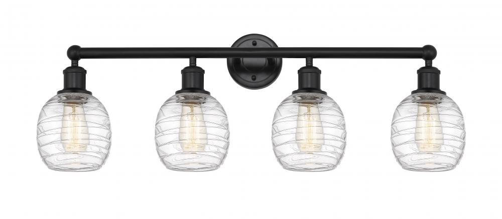 Belfast - 4 Light - 33 inch - Matte Black - Deco Swirl Shade - Bath Vanity Light