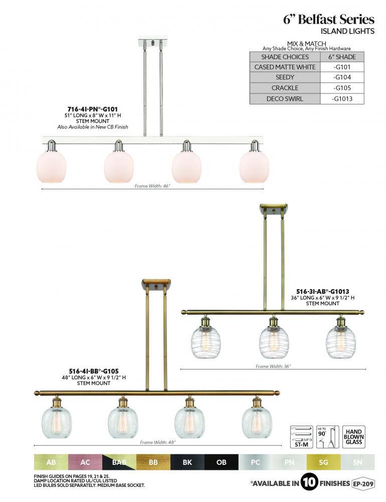 Belfast - 4 Light - 48 inch - Polished Chrome - Seedy Shade - Stem hung - Island Light