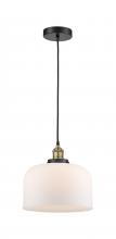 Bell - 1 Light - 12 inch - Antique Brass - Matte White Shade - Cord hung - Mini Pendant