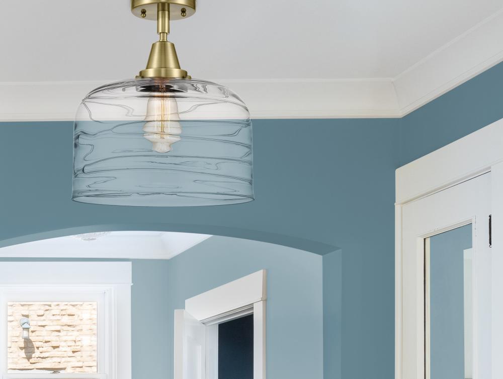 Bell - 1 Light - 12 inch - Antique Brass - Clear Deco Swirl Shade - Semi-Flush Mount