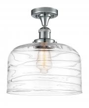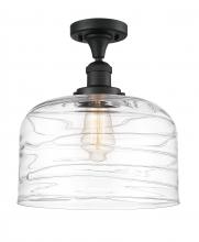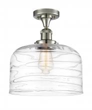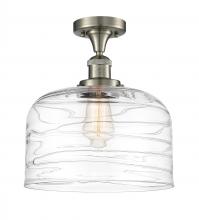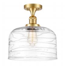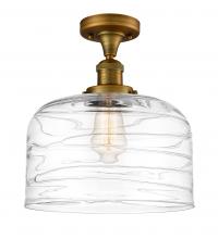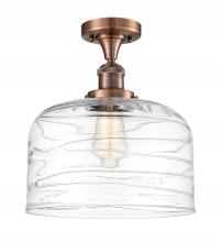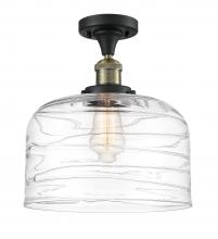 Bell - 1 Light - 12 inch - Antique Brass - Clear Deco Swirl Shade - Semi-Flush Mount