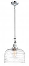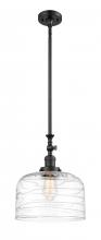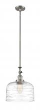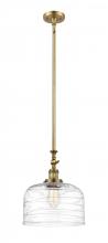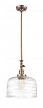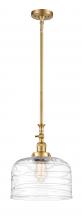 Bell - 1 Light - 12 inch - Antique Brass - Clear Deco Swirl Shade - Stem Hung - Adjustable Mini Pendant