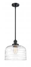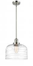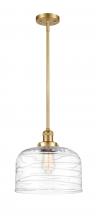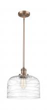 Bell - 1 Light - 12 inch - Antique Brass - Clear Deco Swirl Shade - Stem Hung - Mini Pendant