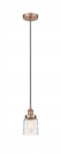 Bell - 1 Light - 5 inch - Antique Brass - Clear Deco Swirl Shade - Cord hung - Mini Pendant