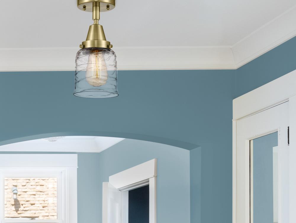 Bell - 1 Light - 5 inch - Antique Brass - Clear Deco Swirl Shade - Semi-Flush Mount
