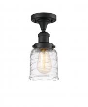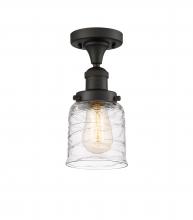 Bell - 1 Light - 5 inch - Antique Brass - Clear Deco Swirl Shade - Semi-Flush Mount