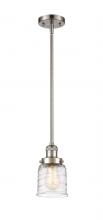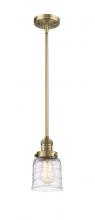 Bell - 1 Light - 5 inch - Antique Brass - Clear Deco Swirl Shade - Stem Hung - Mini Pendant