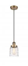Bell - 1 Light - 5 inch - Antique Copper - Clear Deco Swirl Shade - Cord hung - Mini Pendant