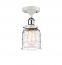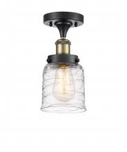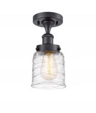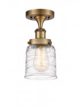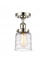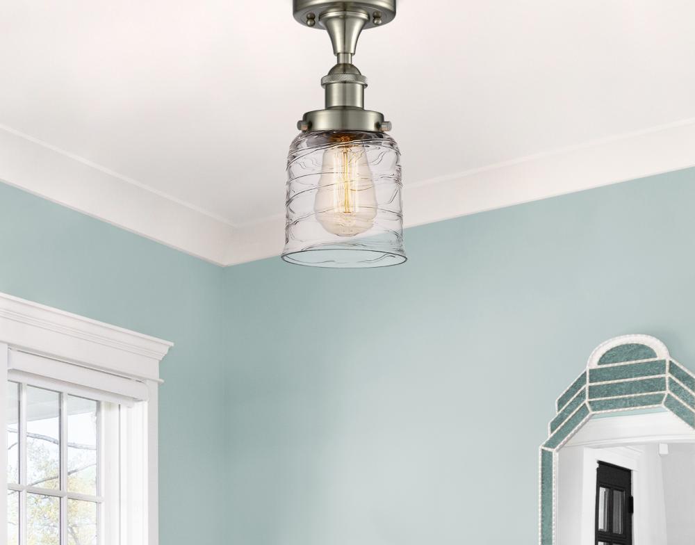 Bell - 1 Light - 5 inch - Brushed Satin Nickel - Clear Deco Swirl Shade - Semi-Flush Mount