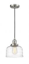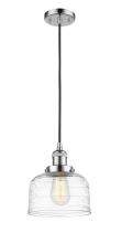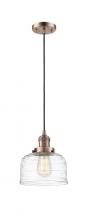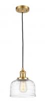 Bell - 1 Light - 8 inch - Antique Brass - Clear Deco Swirl Shade - Cord hung - Mini Pendant