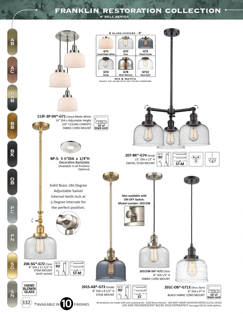 The Franklin Restoration collection is comprised of heavy cast components that give the fixture a heavy Industrial look and feel. We offer the fixture in 10 finishes with a Bare Bulb look or with over 100 possible metal and glass shade options that can cha