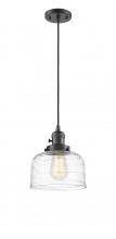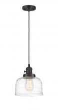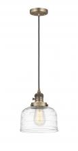 Bell - 1 Light - 8 inch - Antique Brass - Clear Deco Swirl Shade - Cord hung - Mini Pendant