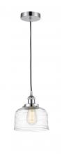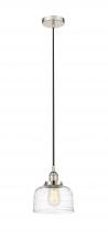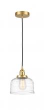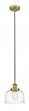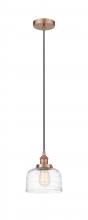 Bell - 1 Light - 8 inch - Antique Brass - Clear Deco Swirl Shade - Cord hung - Mini Pendant