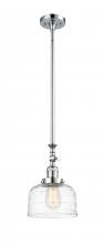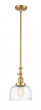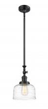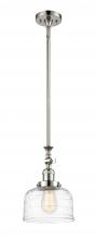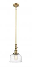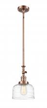 Bell - 1 Light - 8 inch - Antique Brass - Clear Deco Swirl Shade - Stem Hung - Adjustable Mini Pendant