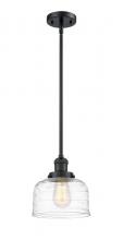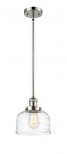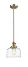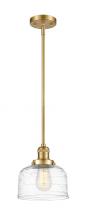 Bell - 1 Light - 8 inch - Antique Brass - Clear Deco Swirl Shade - Stem Hung - Mini Pendant