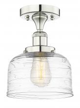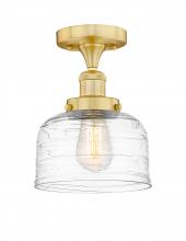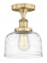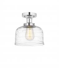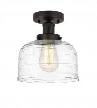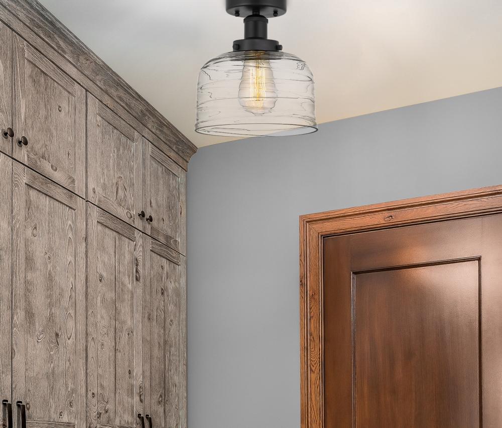 Bell - 1 Light - 8 inch - Matte Black - Clear Deco Swirl Shade - Semi-Flush Mount