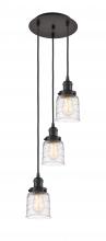 Bell - 3 Light - 12 inch - Antique Brass - Clear Deco Swirl Shade - Cord hung - Multi Pendant