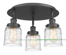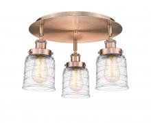 Bell - 3 Light - 17 inch - Antique Brass - Clear Deco Swirl Shade - Semi-Flush Mount